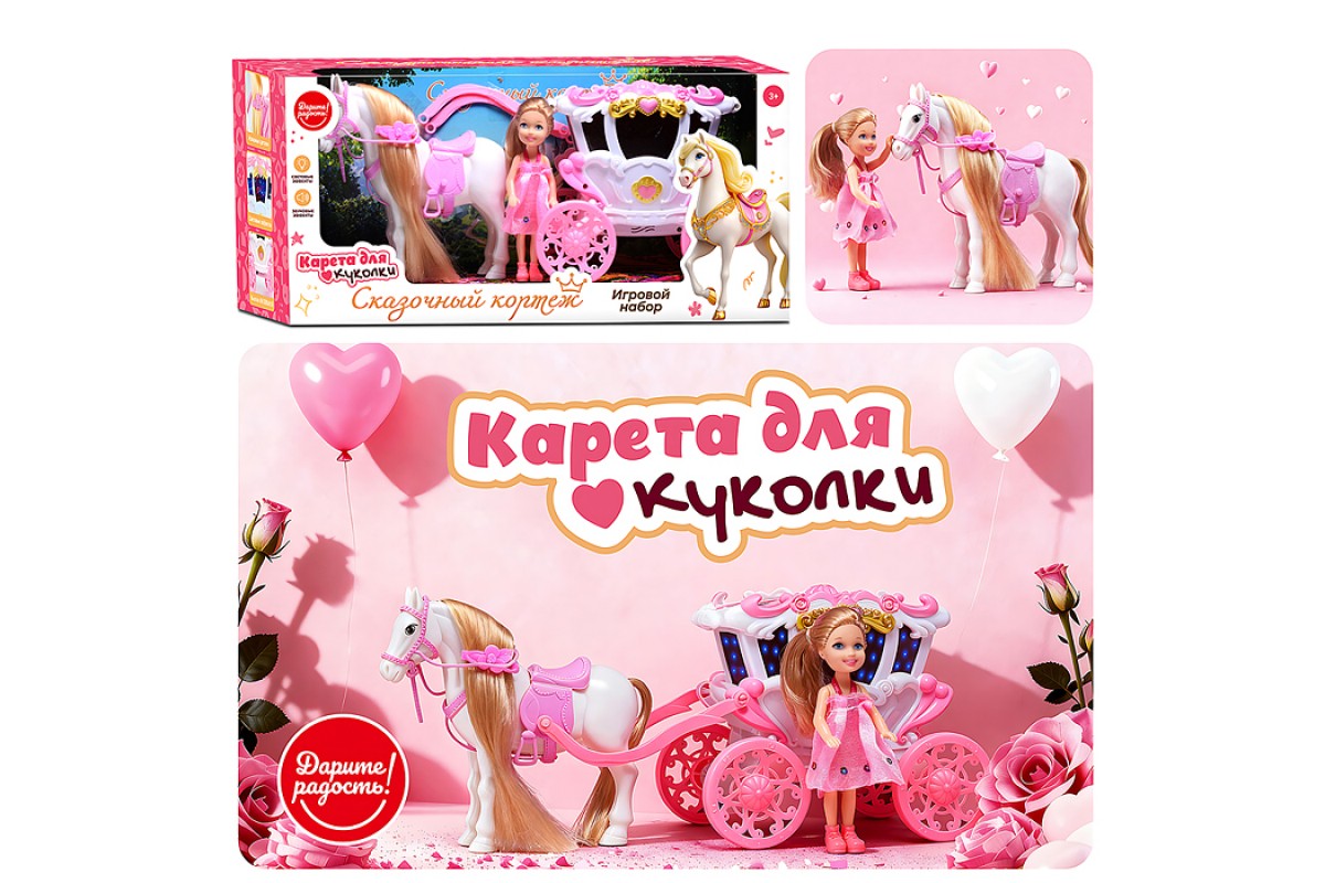 Карета с лошадкой и куклой "Сказочный кортеж" в коробке