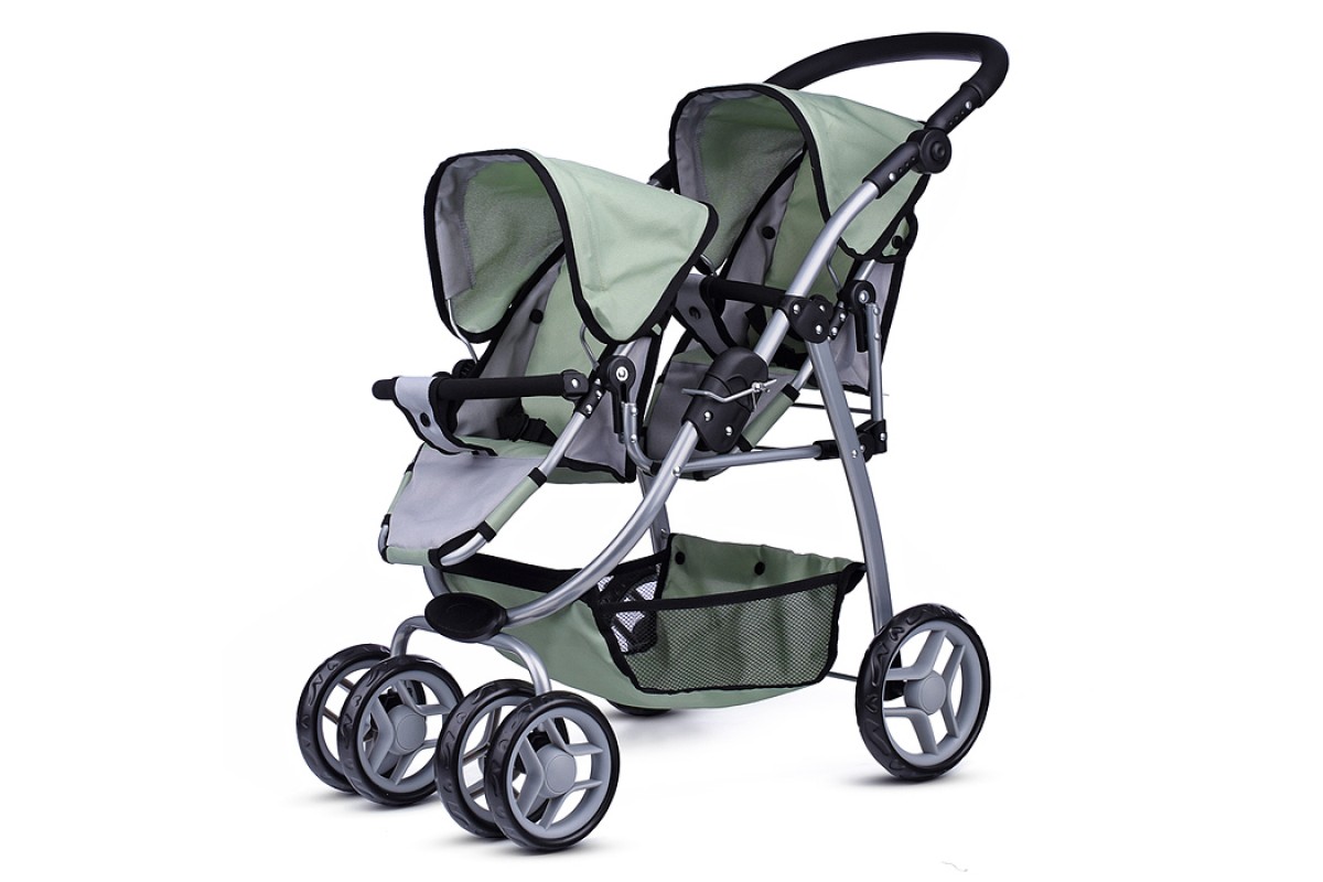 Коляска для кукол (для двойни)металлическая,прогулочная,с тентом,с корзиной,в пакете