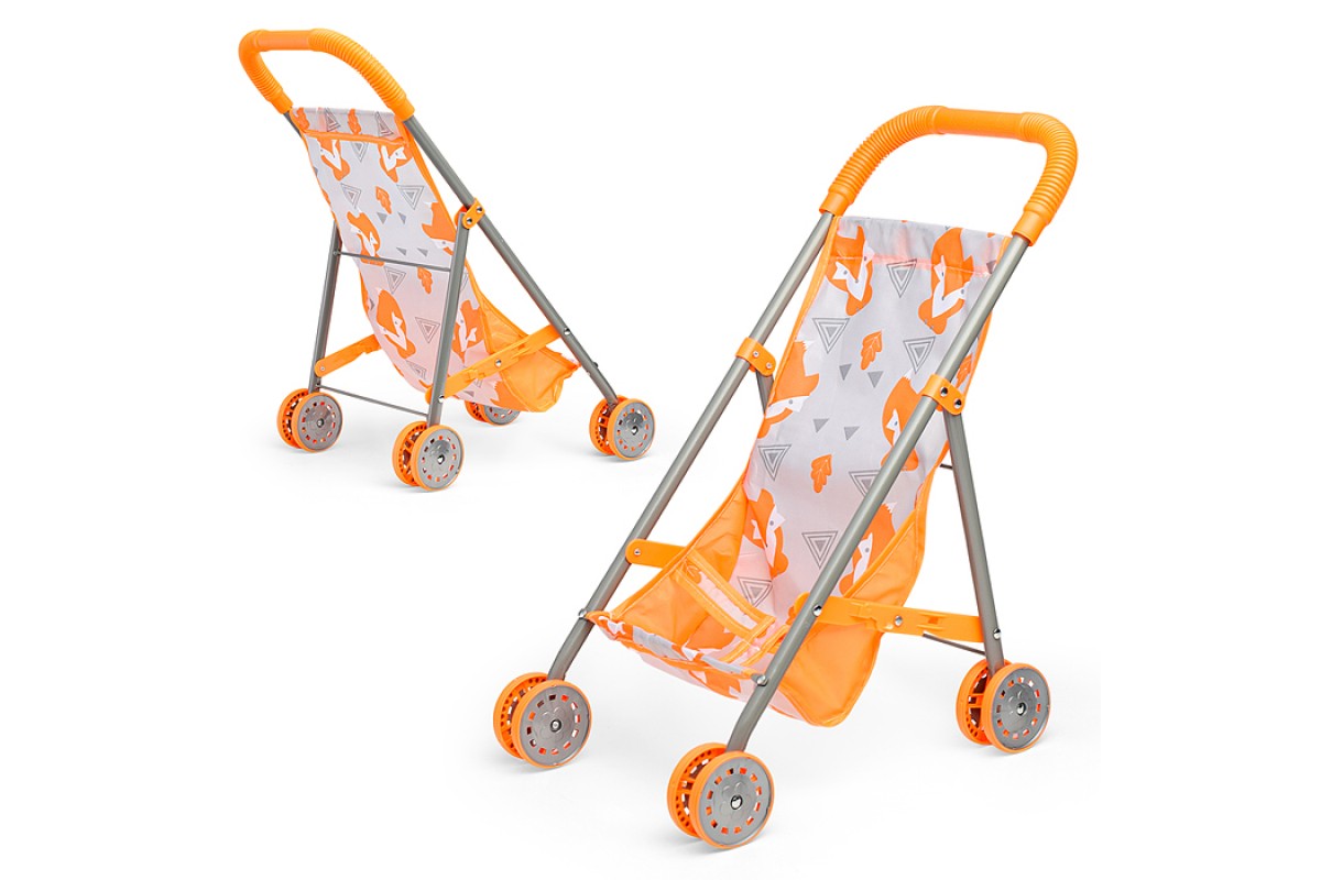 Коляска кукольная (металлическая, складная, цвет оранжевый, с принтом) в пакете