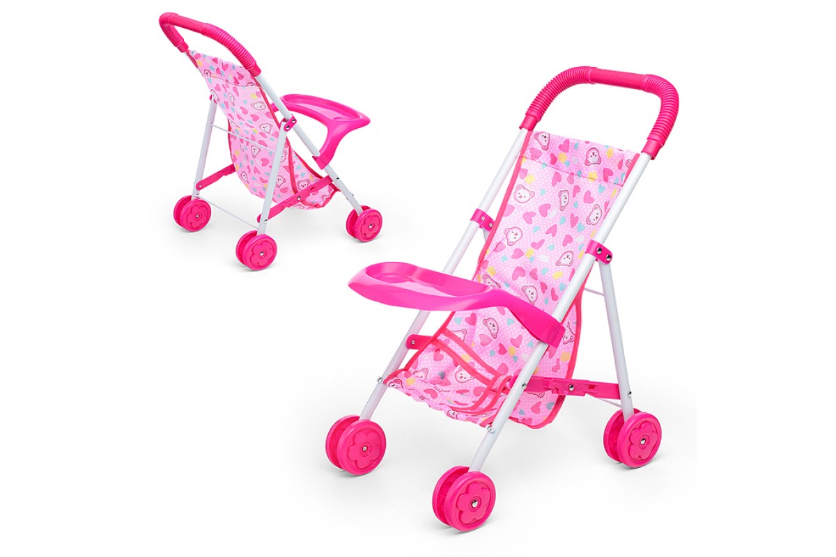 Коляска кукольная (металлическая, складная, цвет розовый, с принтом) в пакете