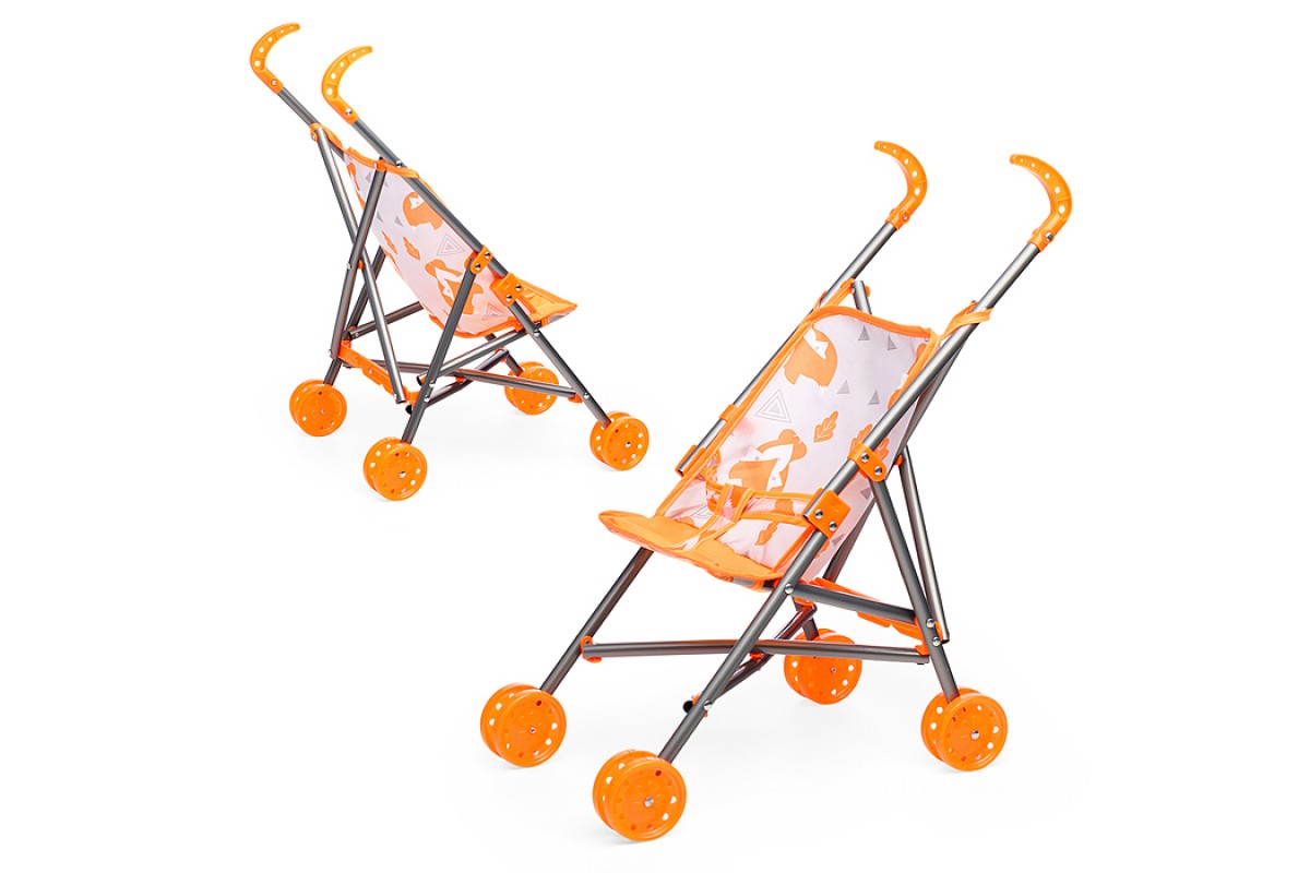 Коляска кукольная (металлическая, трость, складная, цвет оранжевый) в пакете