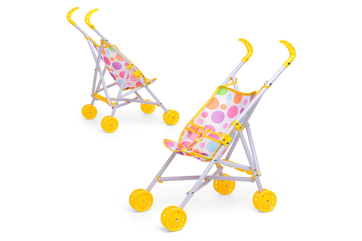 Коляска кукольная (трость, складная, цвет жёлтый, с принтом) в пакете