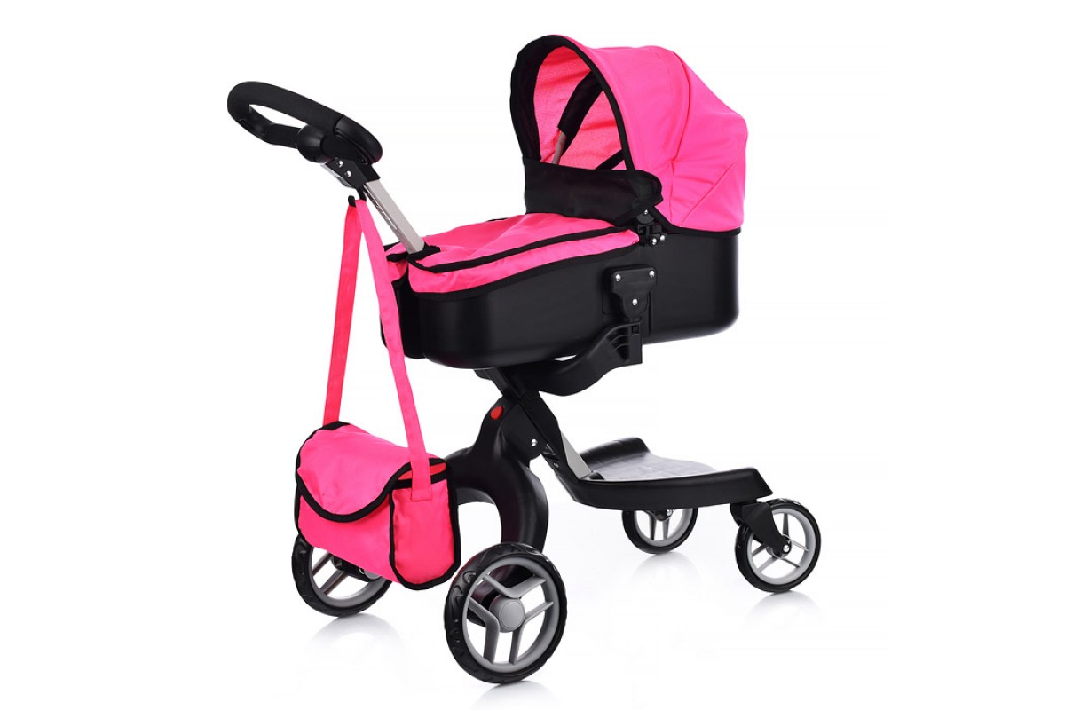 Коляска-люлька для кукол, металлическая, с сумкой, цвет ярко-розовый