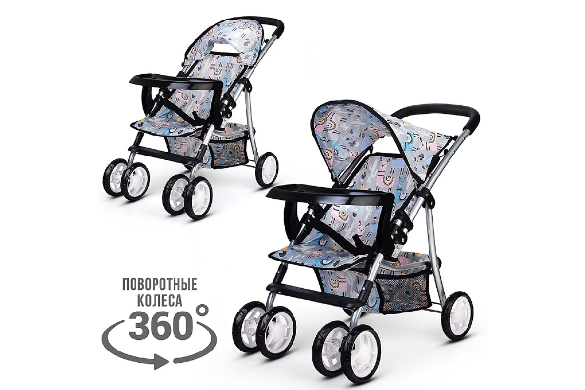 Коляская кукольная металлическая, со толиком, корзиной и крозырьком, принт альпаки