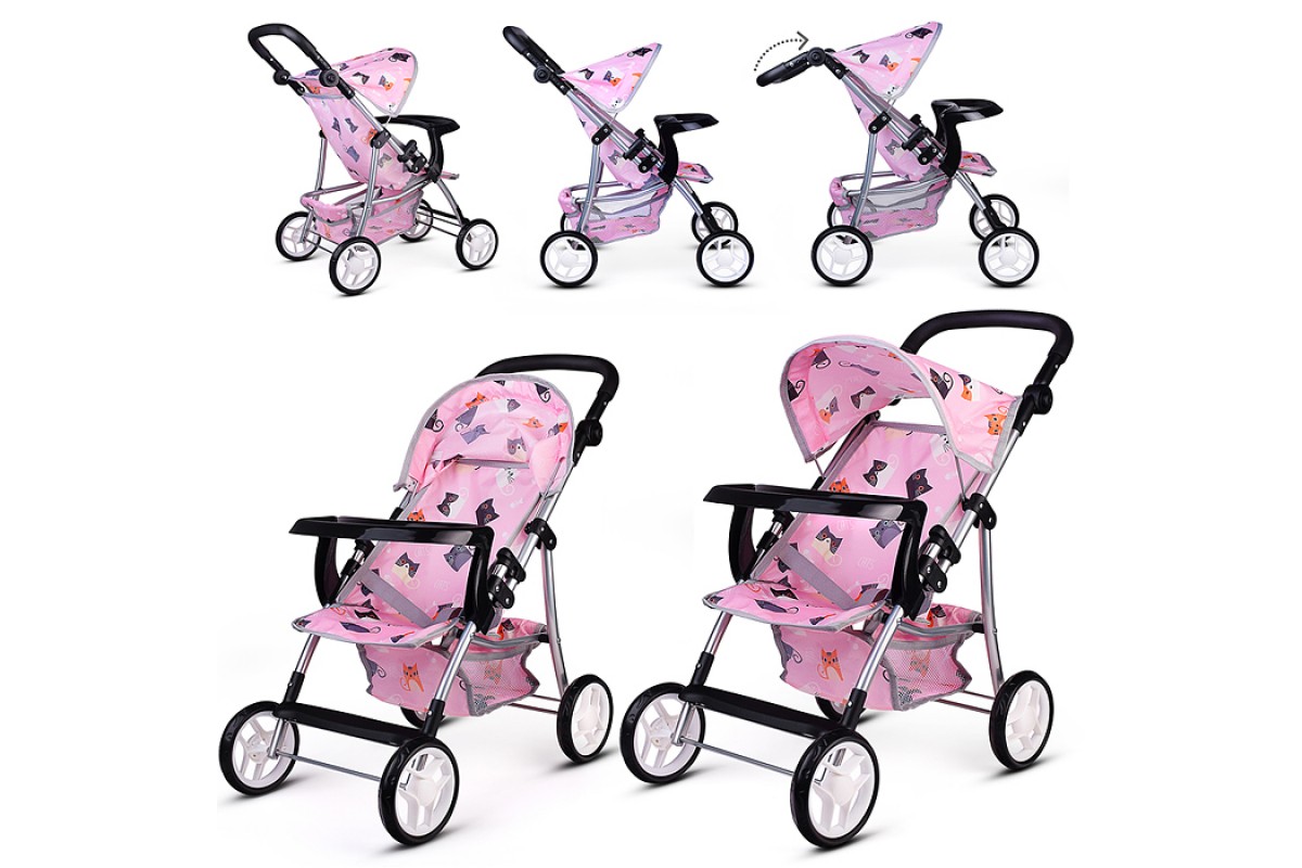 Коляская кукольная трость, металлическая, с корзиной, столиком и козырьком