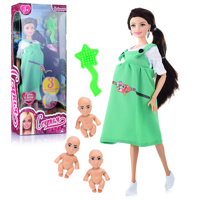Кукла София беременная 29 см, (руки и ноги сгиб, 3 младенца, акс,) в коробке