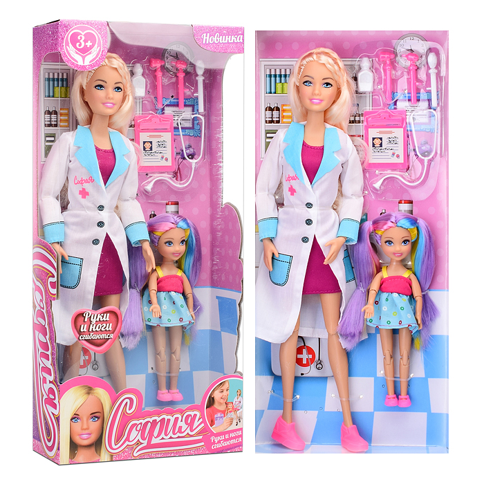 Кукла София врач, 29 см, с пациентом Машенька и акс, руки и ноги сгиб, в коробке