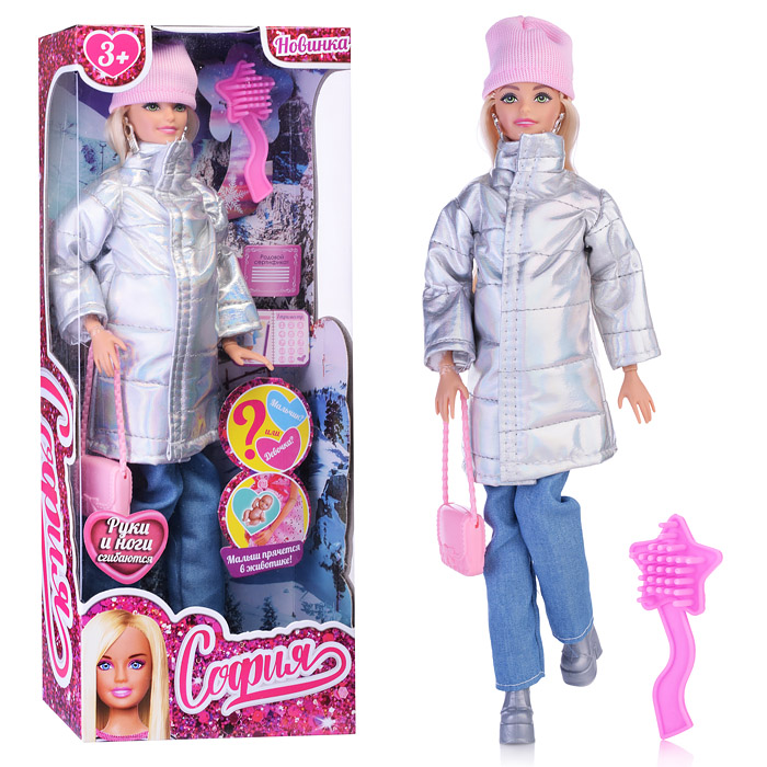 Кукла София 29 см. беременная (руки и ноги сгиб, акс, зимняя одежда) в коробке