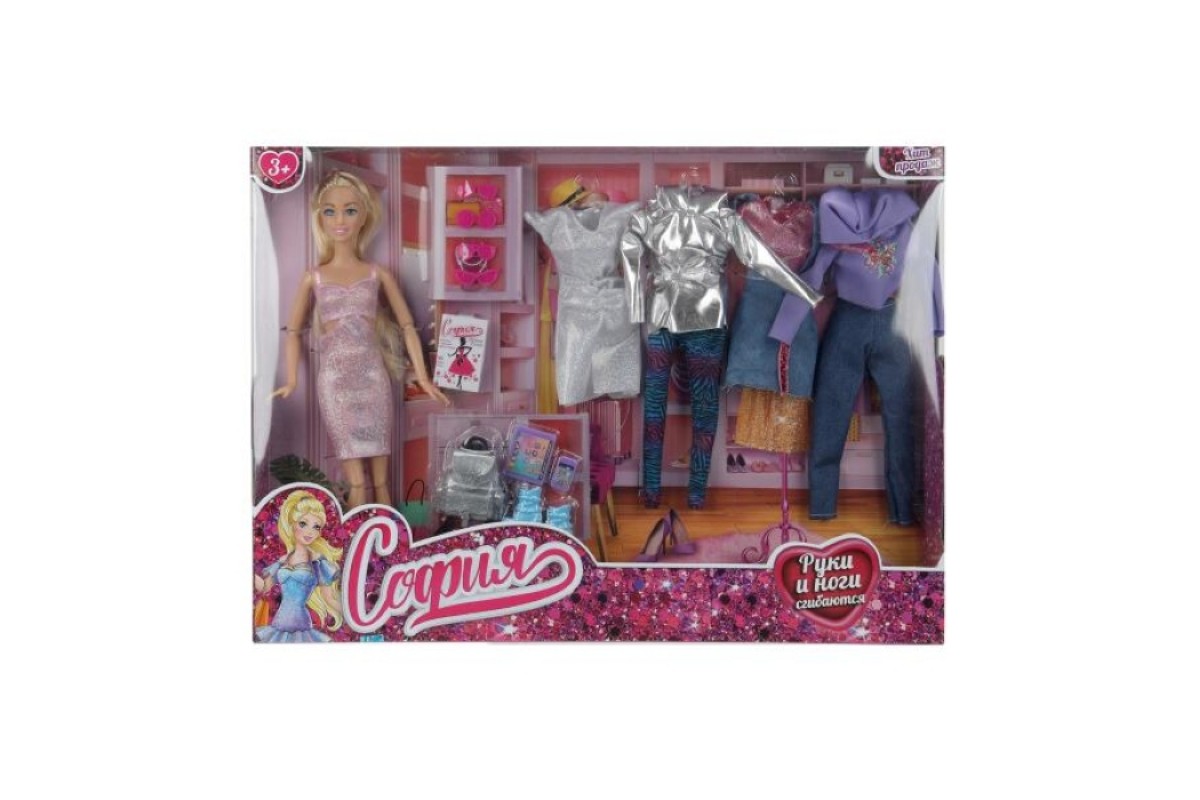 Кукла 29см София, руки и ноги сгиб, 4 комплекта одежды, аксессуары