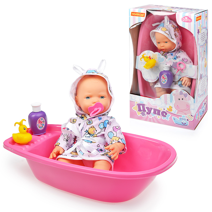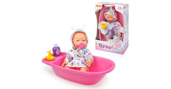 Набор для купания. Пупс "Весёлый" (35 см) с соской + ванночка (2 элемента) (в коробке)