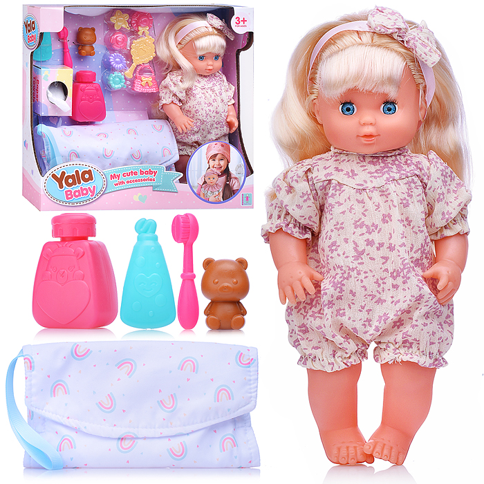 Пупс "Славный" (24 см) с набором для кормления (3 элемента) (в пакете)