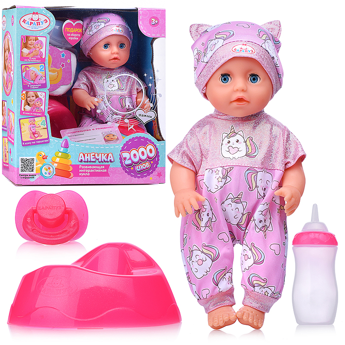 Пупс озвуч 25см, (Шаинский музыка пьет, писает, закр. глазки, 4акс, 2000 слов) в коробке