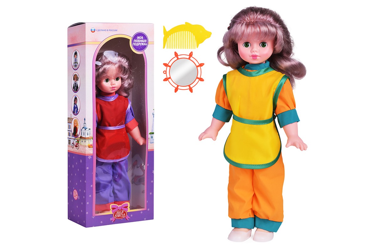 В комплекте с куклой идут 2 аксессуара - расчёска и зеркальце.