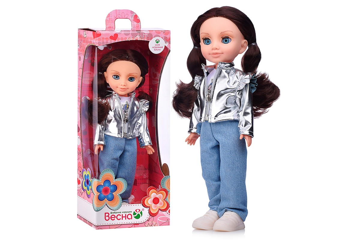 У куклы длинные мягкие волосы, прошитые по всей голове.
