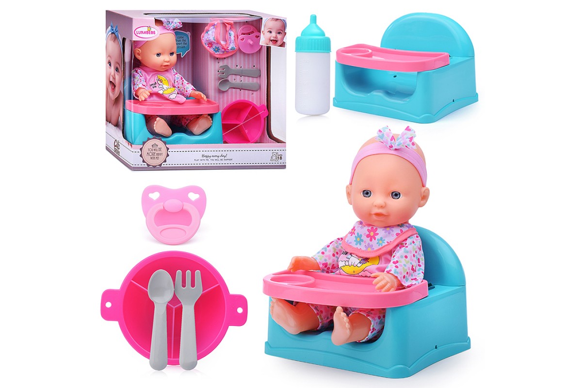 • В комплекте: соска, бутылочка, тарелка, ложка, стол для кормления (17х10,5х12 см.).