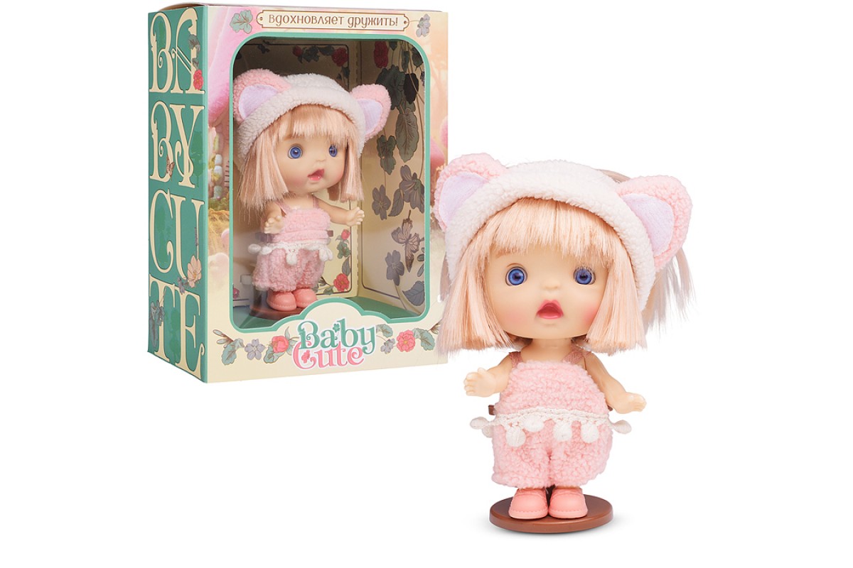 Виниловая кукла Baby Cute в шапке с ушками, 10 см