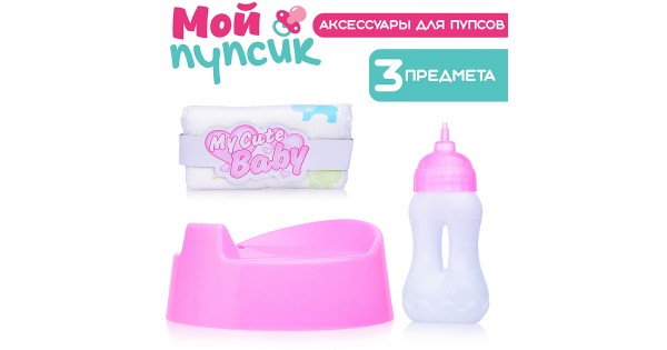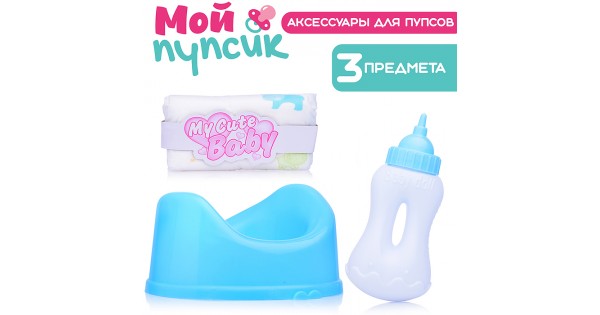 Аксессуары для пупса "Мой пупсик" (горшок синий, бутылочка, памперс) в пакете