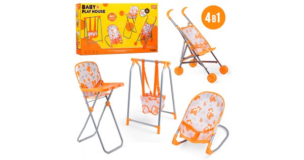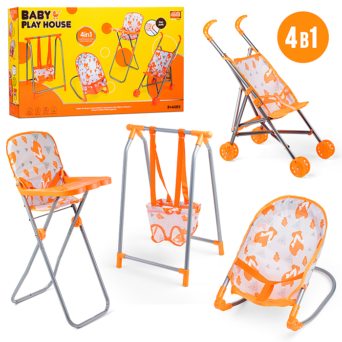 Набор аксессуаров для куклы 4в1 (качель, стульчик, коляска, креслло) в коробке