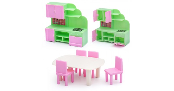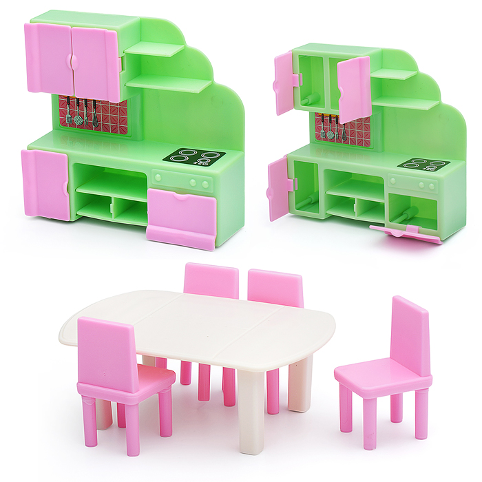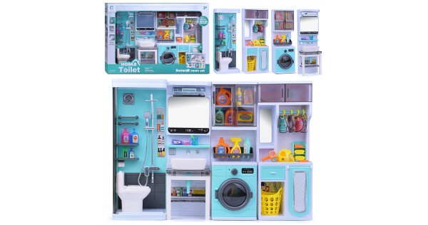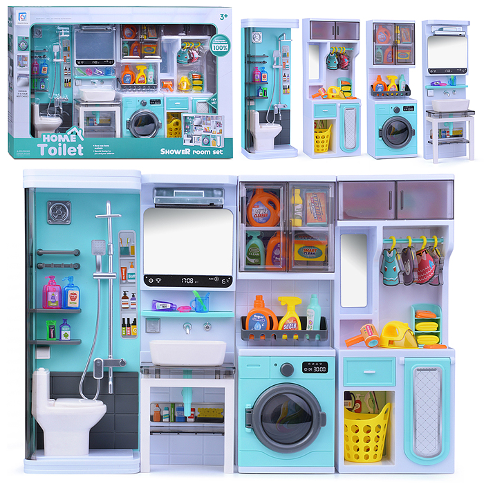 Набор мебели для кукол "Прачечная с душевой" на батарейках, зеленая, в коробке