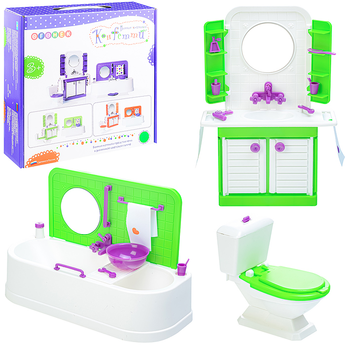 Набор мебели для кукол "Ванная комната" на батарейках, в коробке