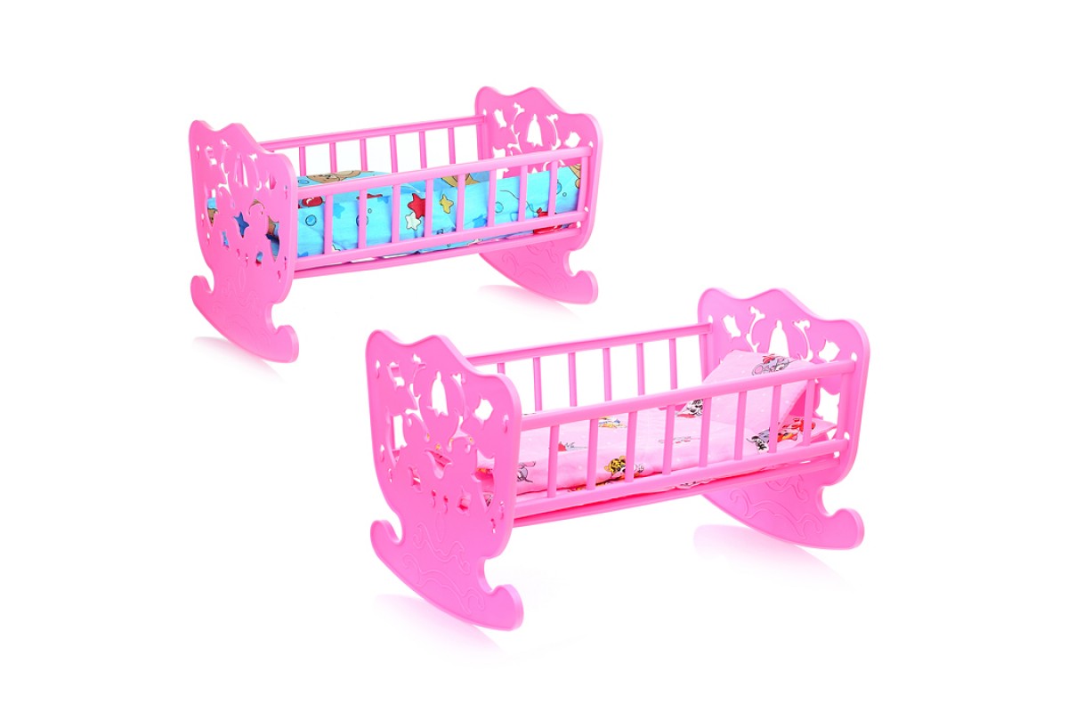 девочка может уложить ее отдельно в красивую розовую кроватку для куклы.