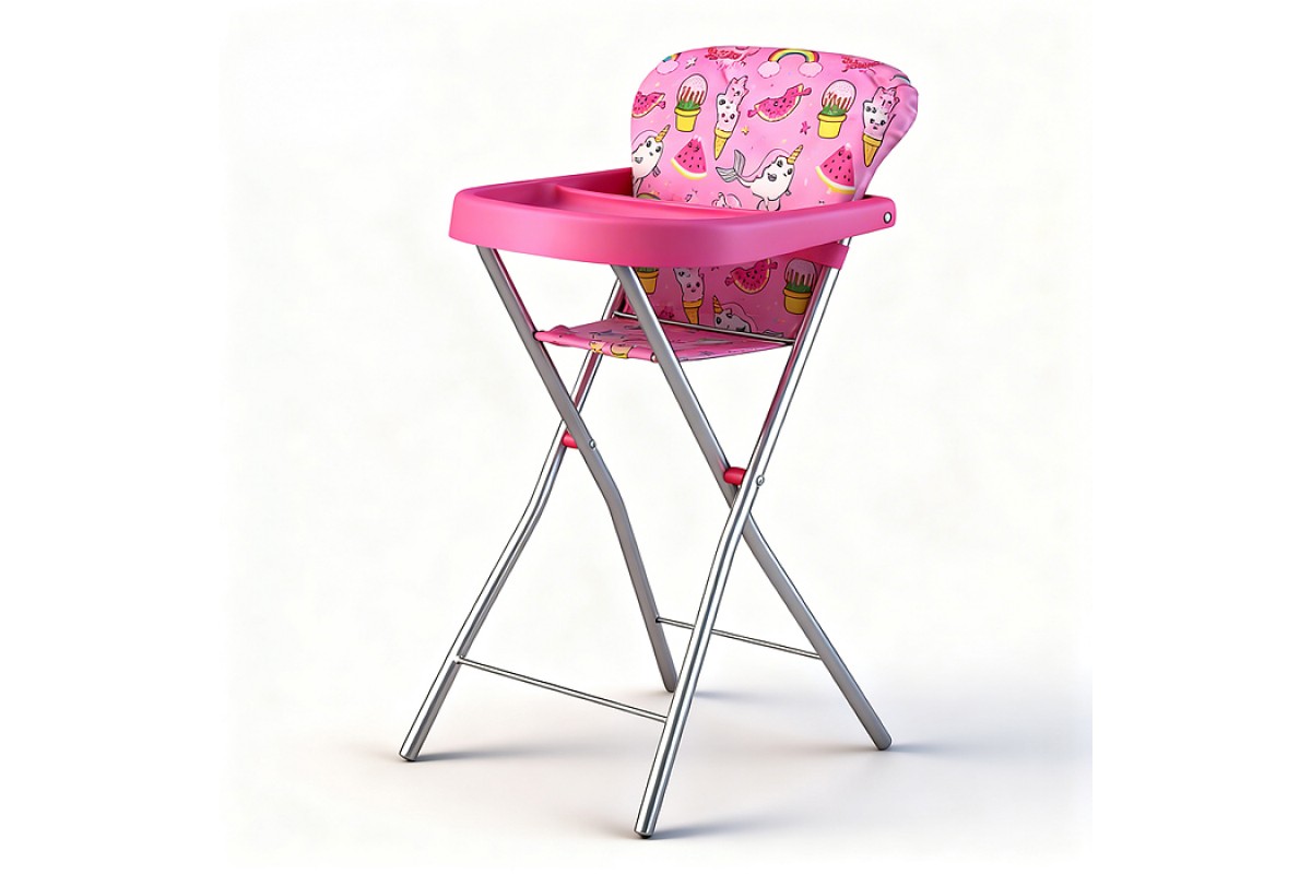 Стульчик для кормления кукольный металлический, принт розовый мир