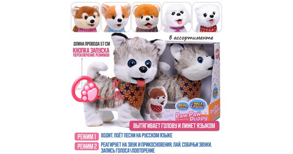 Собака "Пит" (глазки двигаются, запись, пьёт молоко, поёт) в коробке