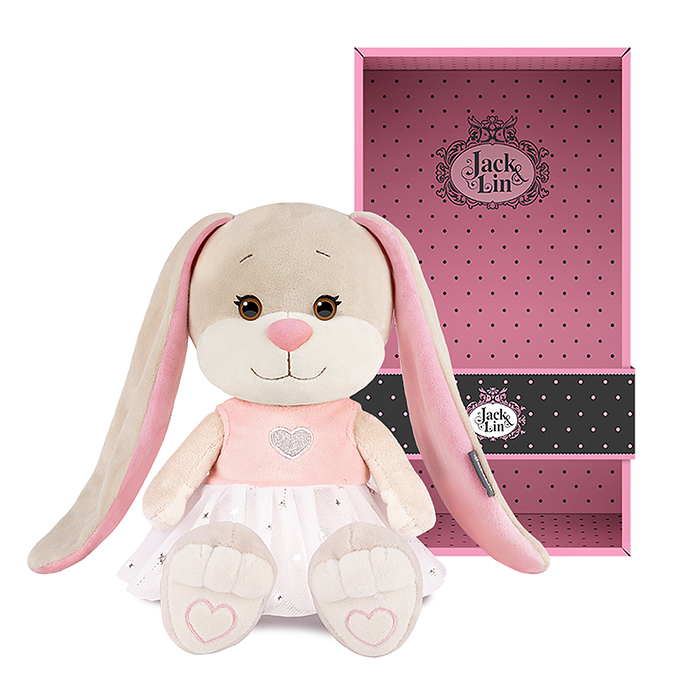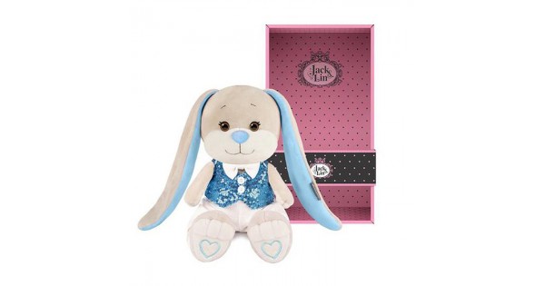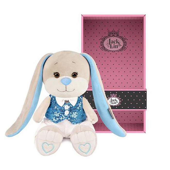 Зайчик Жак в голубой жилетке и белых брюках, 25 см, в коробке.