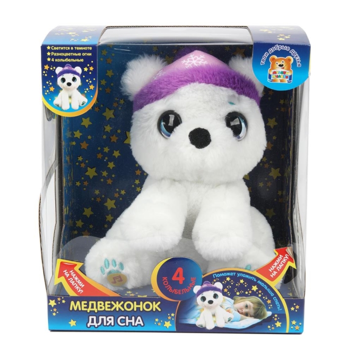 Мягкая игрушка "Полярный медвежонок" 23см, с проектором, ночник