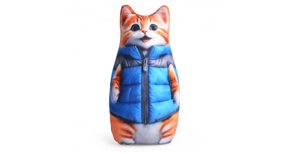Игрушка антистресс "Кот" в голубой курточке(можно с меховысм капюшоном) 30 см.