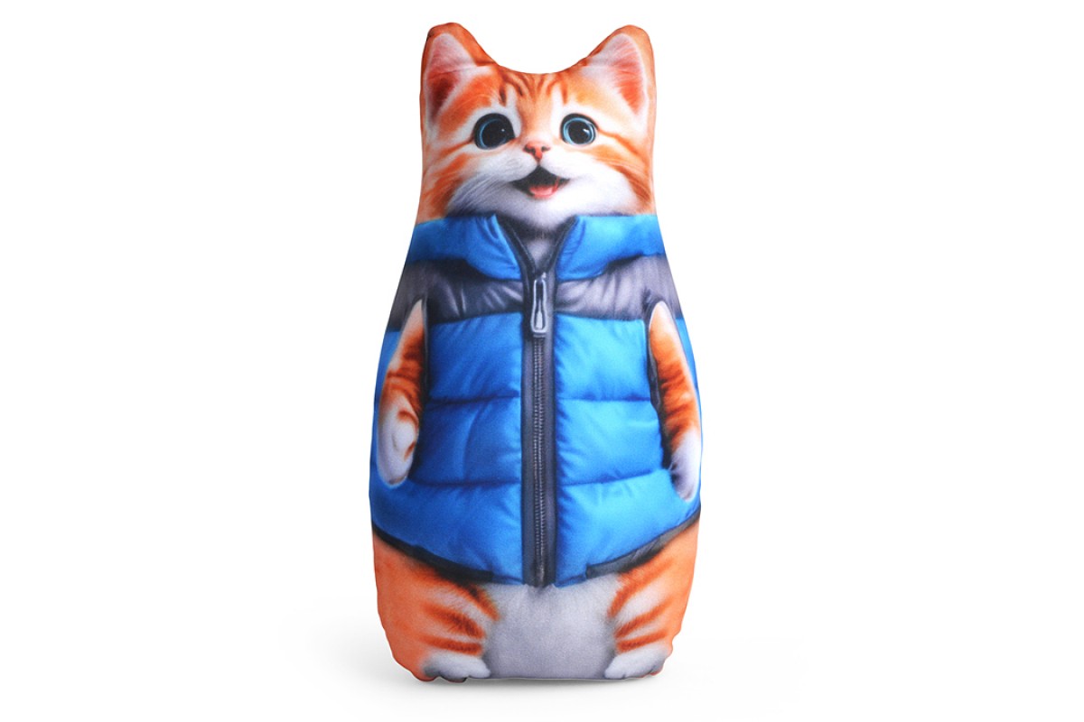 Игрушка антистресс "Кот" в голубой курточке(можно с меховысм капюшоном) 30 см.