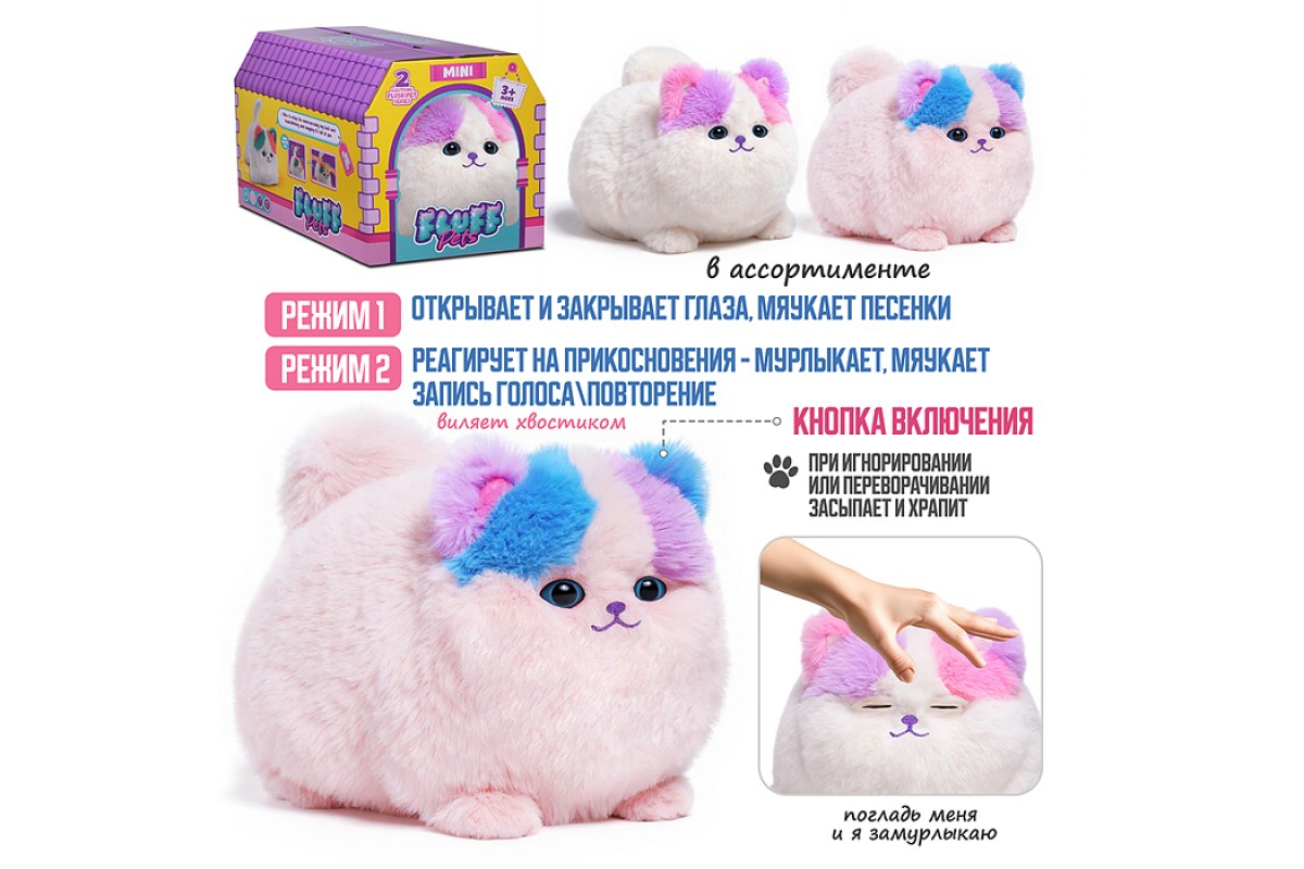 Кошка "Дарси" (глазки двигаются, запись, поёт и пьёт молоко) в коробке