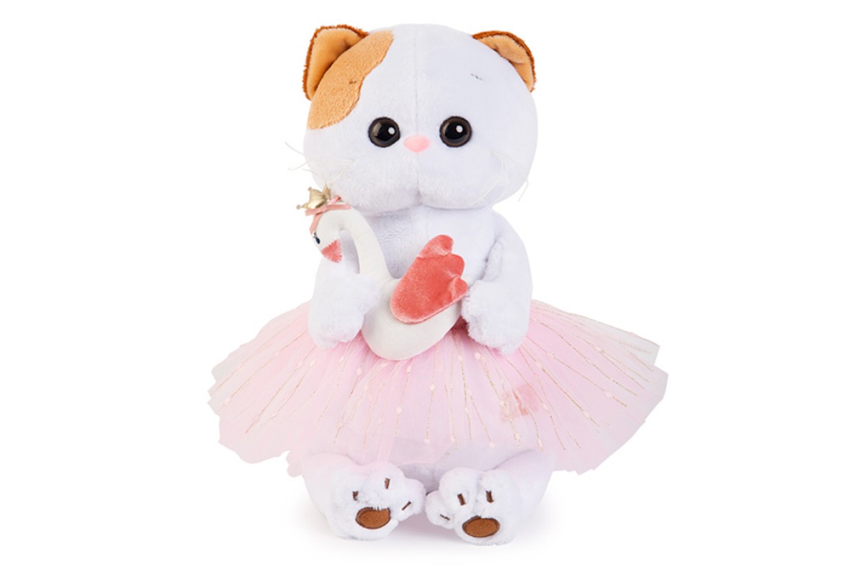 • Одета в юбку-пачку и держит в лапках игрушку-лебедя.