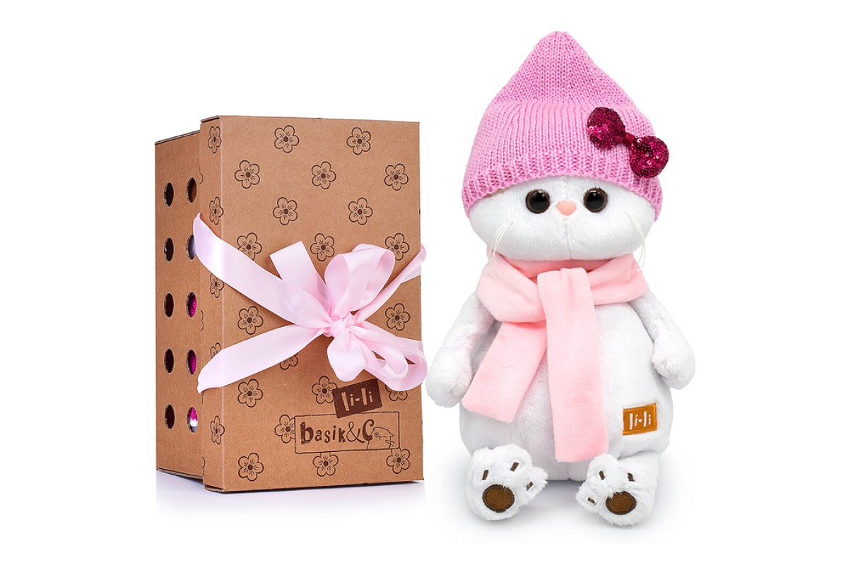 Кошка Ли-Ли в шапке с бантом и шарфе