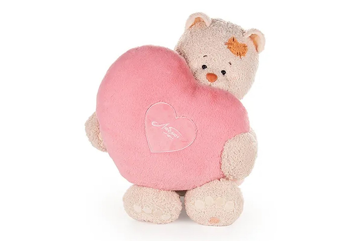 Кошка Мэри в пудровом платье, с сердцем подушкой пудровой, 37см