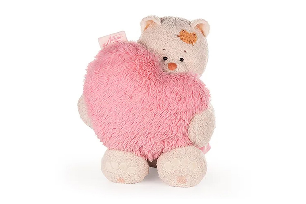 Кошка Мэри в пудровом платье, с сердцем подушкой пушистой, 37см