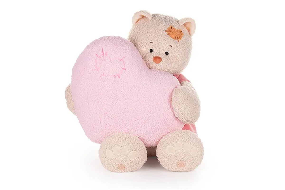 Кошка Мэри в пудровом платье, с сердцем подушкой розовой, 37см