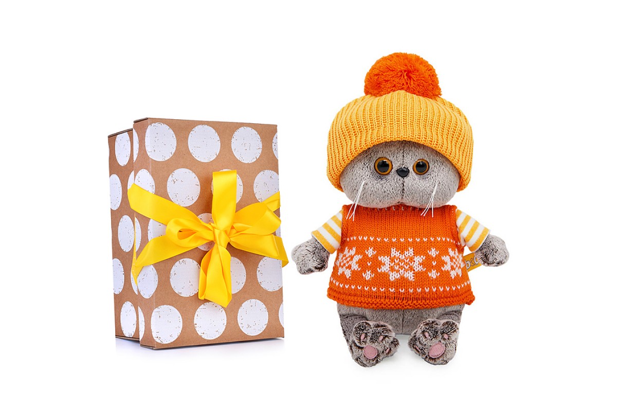 Кот Басик BABY в жилете и шапочке с помпоном