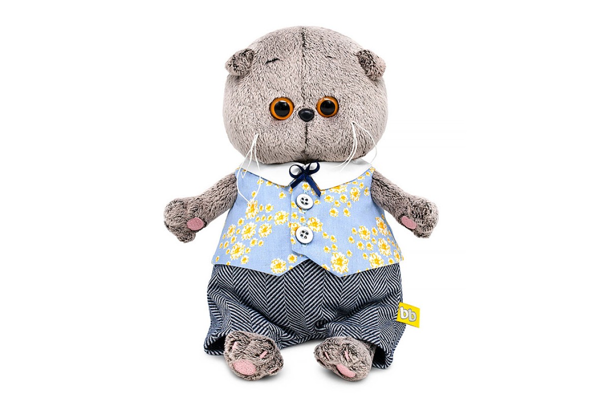 Кот Басик BABY в жилете в цветочек и брючках