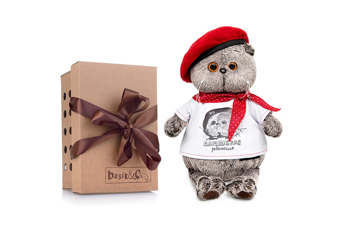 Кот Басик в футболке с принтом "Плюшевая революция" 22см