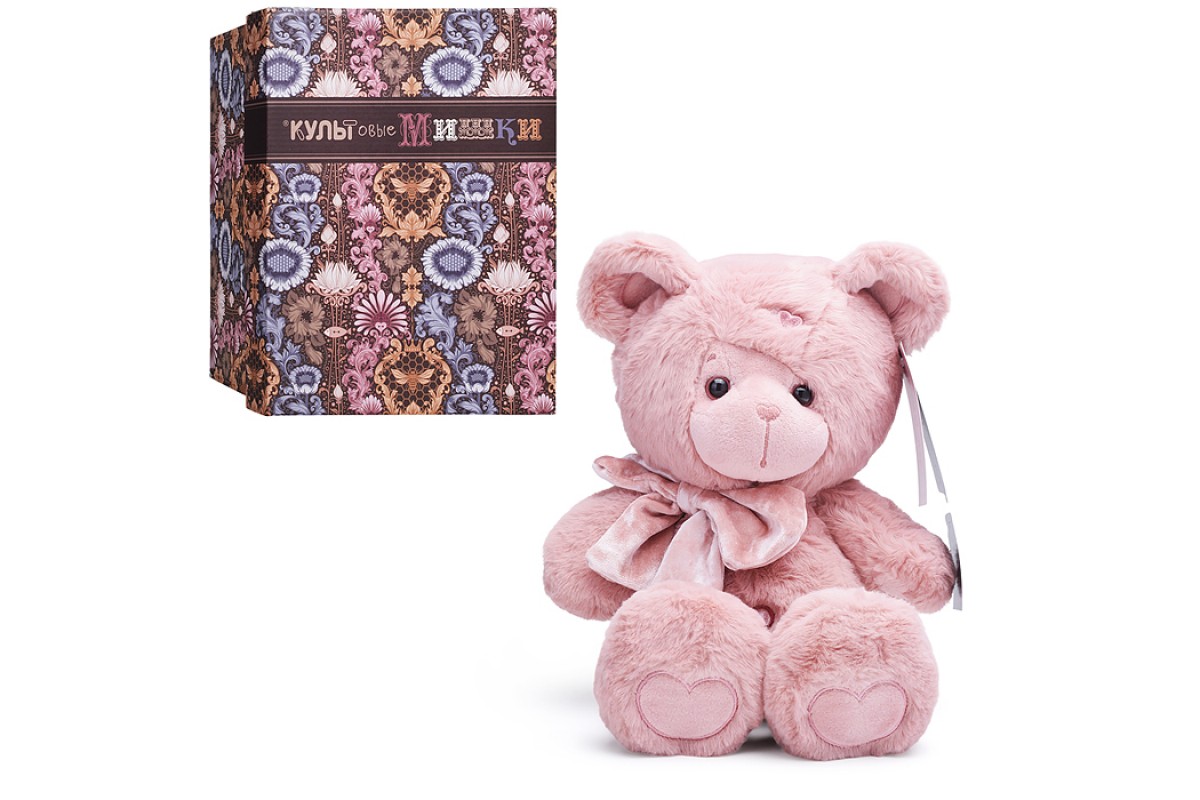 Медведь Ляля с бантом, 25см, пудровый