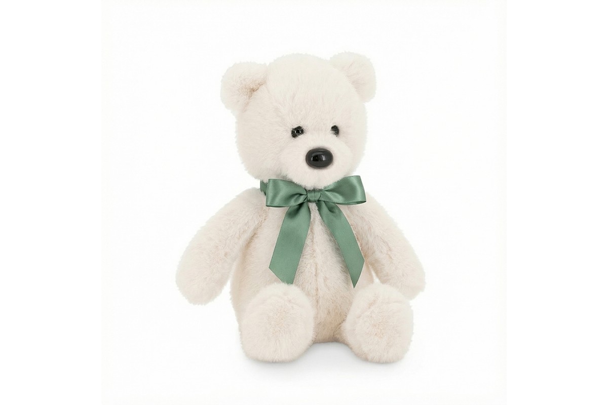 Медвежонок Тёпа белый с зеленым бантом 25