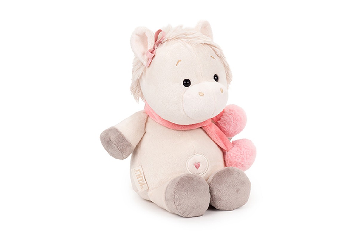 Мягкая игрушка "Лошадка Ами" с шарфом, пудровый 20 см.