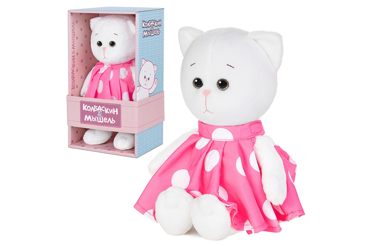 Мышель в розовом платье в горошек, 20 см, в коробке