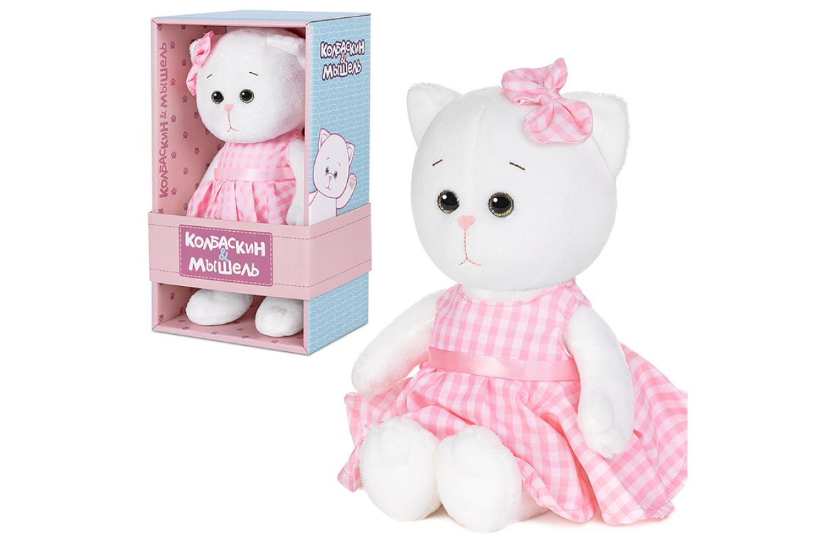 Мышель в розовом платье в клеточку, 20 см, в коробке