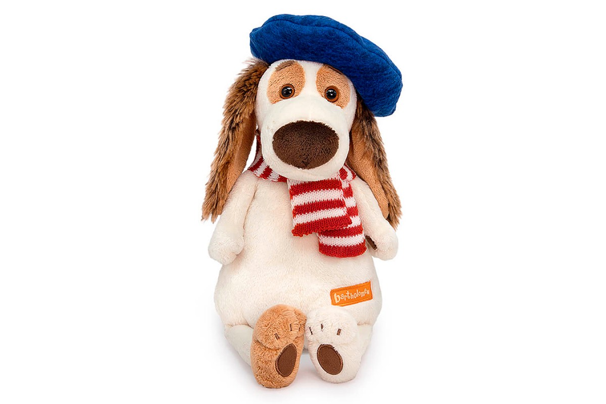 Собака Бартоломей в берете и шарфе