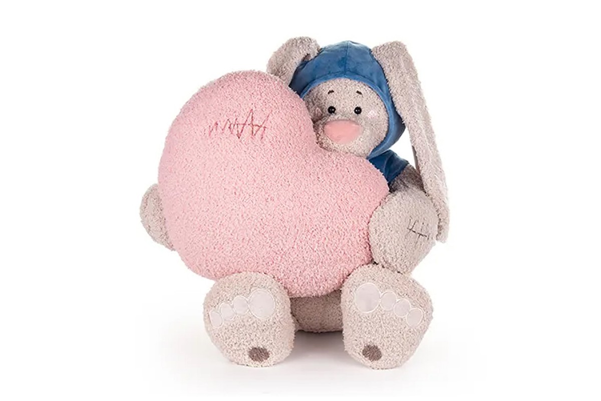 Заяц Вито в т.бирюзовой кофте, с сердцем подушкой пудр., 37см