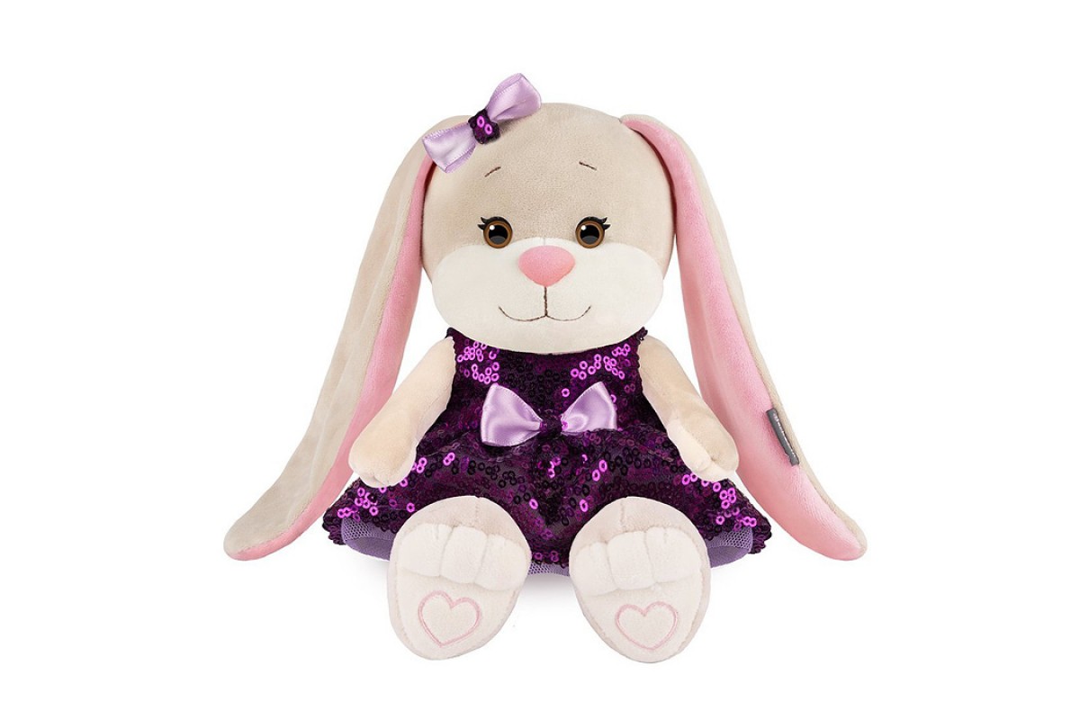 Зайка Лин в фиолетовом платьице с пайетками, 20 см,