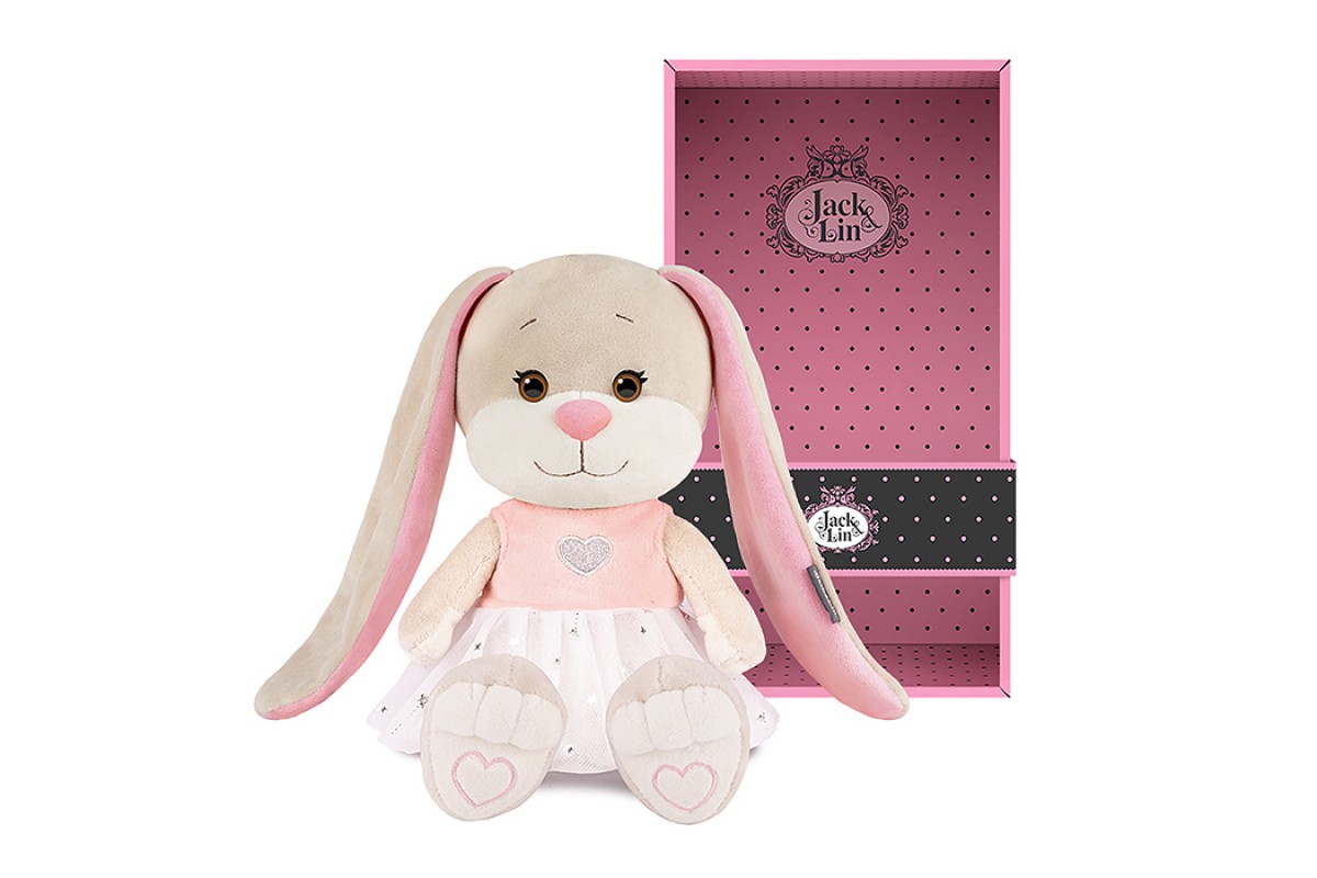 Зайка Лин в платье с сердечком, 20 см, в коробке
