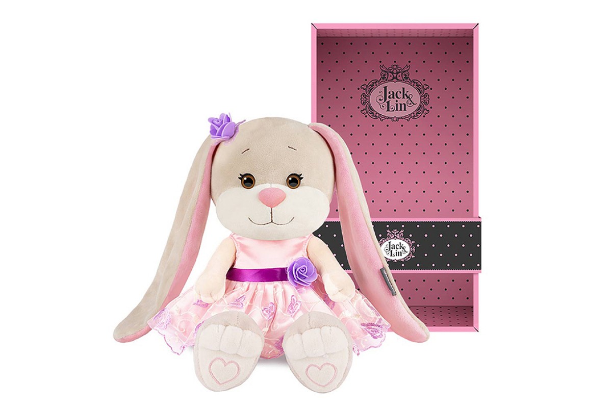 Зайка Лин в вечернем платье с цветком, 25 см, в коробке.